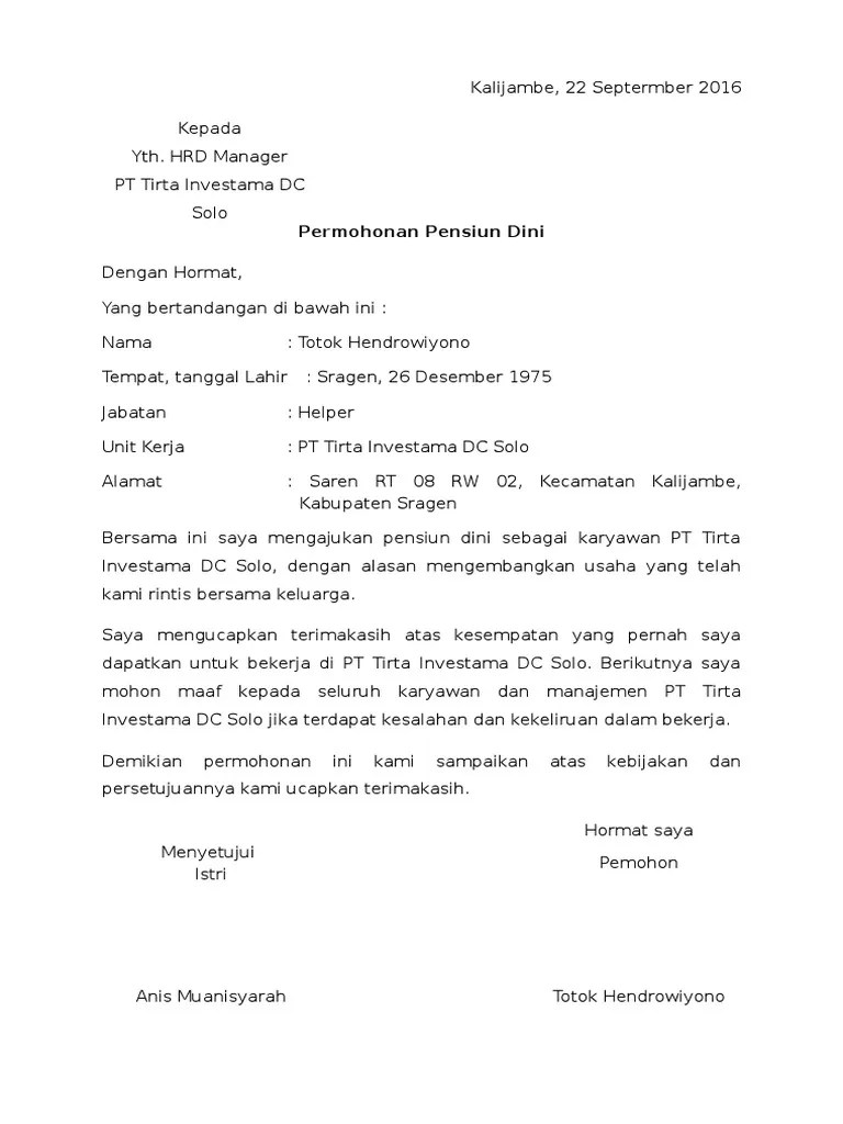 Contoh surat permohonan pensiun dini karyawan swasta bagikan contoh alasannya ada program pensiun dini dari kantor